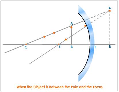 الف) وقتی جسم در فاصله کانونی آینه کاو باشدتصویر (مجازی ،مستقیم ،بزرگتر از جسم و در پشت آینه )ایجاد می شود.