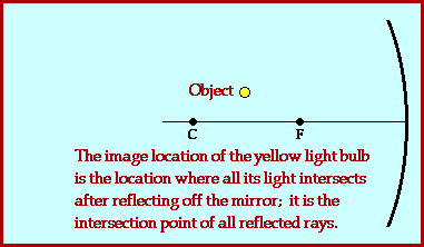 د)وقتی جسم خارج از مرکزآینه باشدتصویری (حقیقی،وارونه ،کوچکتر از جسم و در جلوی اینه بین کانون و مرکز) ایجاد می شود.